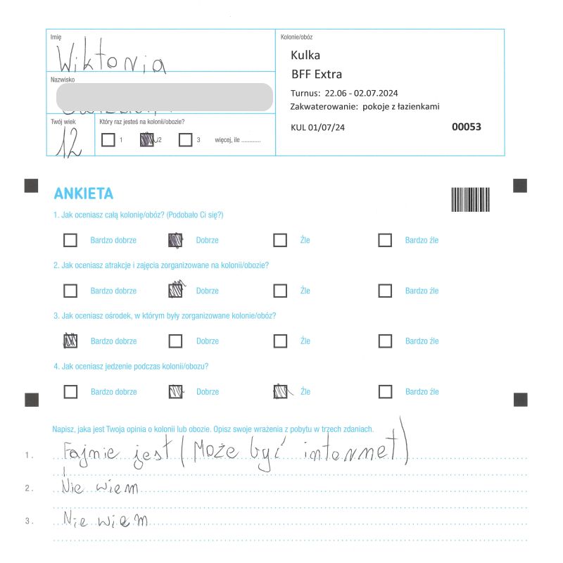 Elementem realizacji programu jest dobrowolny udział uczestników w konkursie „Wyraź swoje zdanie”. Zachęcamy, by wyrazić w ankiecie swoją opinię i ocenić nasze kolonie i obozy.