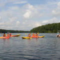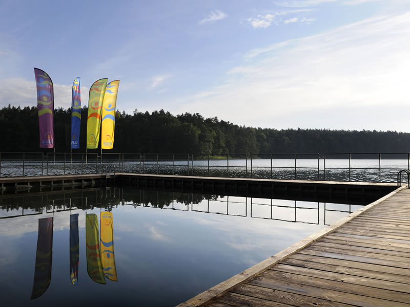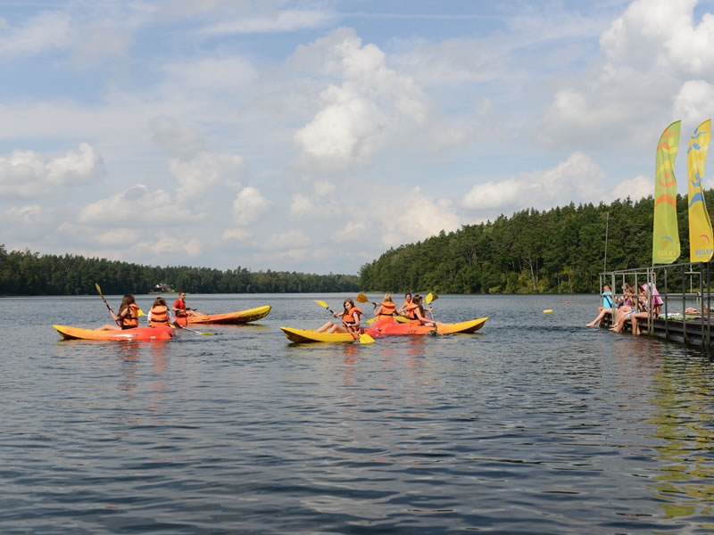 Mówisz „Mazury”, myślisz „jezioro”… Ośrodek leży nad pięknym i czystym jeziorem Łęsk o powierzchni 116 ha, sąsiadującym z rezerwatem przyrody Kulka. Na plaży znajduje się pomost, a w czasie kolonii kąpielisko pod opieką ratowników. Czekają na Was: rowery wodne, kajaki turystyczne, kajaki bezburtowe oraz smocze łodzie.