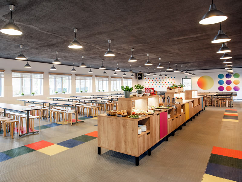 W przestronnej, jasnej i kolorowej stołówce jednorazowo może spożywać śniadania, obiady i kolacje 348 osób. To tutaj spróbujesz pysznych, domowych posiłków przyrządzonych w naszej nowocześnie wyposażonej kuchni i wydawanych przez zawsze uśmiechnięte panie kucharki.