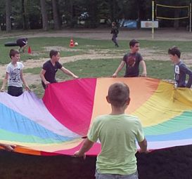 Jako pierwsi dotarli koloniści przywiezieni przez rodziców. Na wszystkich czekały niespodzianki - podczas kiedy młodzież klimatyzowała się w nowym miejscu, rodzice zwiedzali ośrodek oraz gościli w COOL Club. Pierwszy autokar przyjechał już około godz. 13. Wszystkie dzieci zjadły w stołówce swój pierwszy kolonijny posiłek (pysznego kurczaczka). Najedzone i pełne siły uczestniczyły w grach i zajęciach przygotowanych przez wychowawców. Brały udział w zabawie "Poznaj Kulkę” - na torze z przeszkodami mogły sprawdzić swoją koncentracje i spryt, bawiły się chustą Klanzy, a na koniec miały malowane twarze - każde życzenie było spełniane, nawet chęć zostania clownem :).