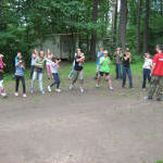 Nasza grupa warsztatowa miała mnóstwo zajęć – rano odbyły się zajęcia z samoobrony, na których dzieci poznały jej tajniki. Pózniej miały warsztat survivalowy, dzięki któremu dowiedzały się jak przetrwać w lesie, rozpalić ognisko czy dobrze zakamuflować się, dzieci podczas zajęć wykazały się dużą pomysłowością.