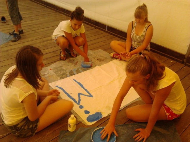 4 żywioły miały dziś niepowtarzalną okazję by malować farbami bez użycia rąk podczas warsztatów plastycznych. Okazało się to bardzo ciekawe i twórcze. W kolejnym bloku odbyły się warsztaty chemiczne, na których koloniści przeprowadzali przeróżne doświadczenia z wodą.