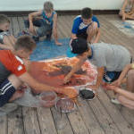 Grupa Paintballowo - Kajakowa po śniadaniu udała się na zajęcia terenowe z instruktorem - budowanie taktyki i strategii oraz techniki kamuflażu i maskowania w terenie. Po południu koloniści udali się na wyprawę kajakową a wieczorem nie mogło zabraknąć kolejnej rozgrywki w paintballa.