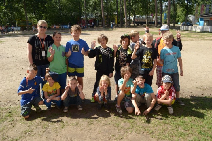 Aktywne Wakacje rozpoczęły dzień od gry w koszykówkę. Zabawa była przednia. Później uczestnicy udali się na pakiet mega gier czyli Chińczyk, Twister i Scrabble w rozmiarze XXL. Tutaj wszyscy wykazali się sprytem i sprawnością. Po grach dzieci poszły na plażę, gdzie po raz ostatni zażyły kąpieli w jeziorze Łęsk.