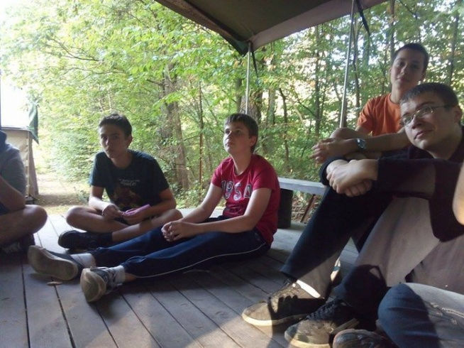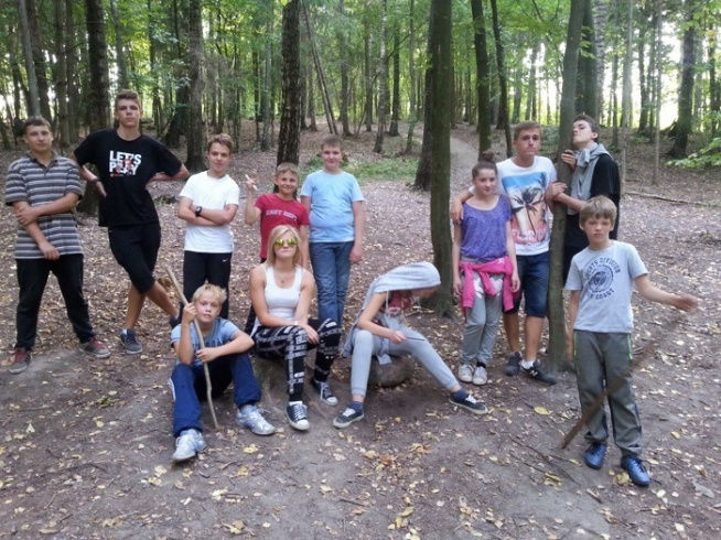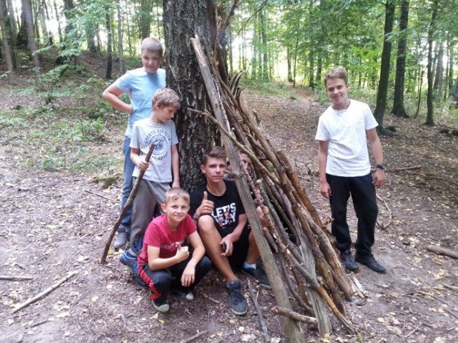 Dziś po śniadaniu rozpoczęliśmy od uporządkowania podobozu oraz swoich namiotów. Następnie poszliśmy do lasu w którym mogliśmy sprawdzić swoje nabyte umiejętności podczas kolonii. Musieliśmy zbudować obozowisko na które składał się szałas, zadaszenie na dzień i na noc, ognisko oraz zbiorniczek w którym będziemy zbierać wodę. Po powrocie byliśmy na obiadku po którym mieliśmy krótką przerwę na odpoczynek. Kolejne zajęcia to INO, czyli bieg na orientację. Po ośrodku były porozwieszane zadania które musieliśmy znaleźć przy pomocy punktów zaznaczonych na mapce. Po kolacji znów wyszliśmy do lasu, tym razem na technikę maskowania i kamuflażu. Wieczorem poszliśmy jeszcze skorzystać z X-BOX-a. Dzień zakończyliśmy krótką zabawą na dyskotece !
