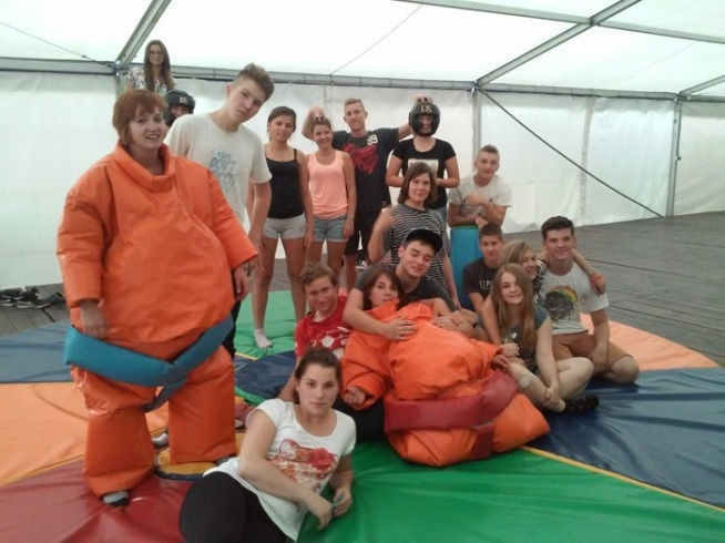 Pełen emocji dzień rozpoczęliśmy od wyprawy do lasu w ramach kolejnych zajęć survivalowych. Po powrocie do ośrodka przeszliśmy szkolenie z samoobrony, dzięki czemu wiemy jak reagować w sytuacji zagrożenia. Następnie bawiliśmy się przy użyciu wykrywacza metalu, udając poszukiwaczy skarbów. Po obiedzie udaliśmy się w kajakową wyprawę, pływaliśmy kajakami bezburtowymi. Następnie pograliśmy w mega gry planszowe, takie jak twister, i jenge. Po kolacji koloniści stanęli przeciwko sobie na macie sumo. Ubrani w duże piankowe stroje stoczyliśmy emocjonujące pojedynki.