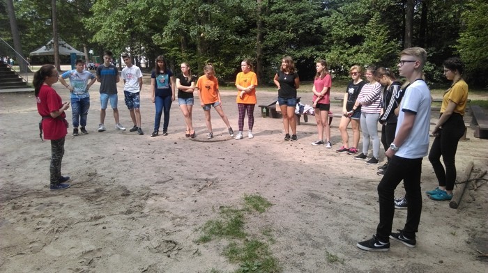 Dziś po śniadaniu odbyły się zajęcia podczas których przechodziliśmy przez pole minowe z wykrywaczem metalu. Następnie mieliśmy zajęcia z wychowawcą, na których bawiliśmy się w „Zombie”, „Supeł” i „Głuchy Telefon”. Później rozegraliśmy mecz piłki siatkowej. W dniu dzisiejszym najbardziej podobała nam się zabawa w „Kalambury”. Pod koniec dnia świetnie bawiliśmy się na dyskotece.