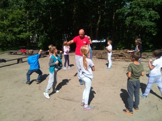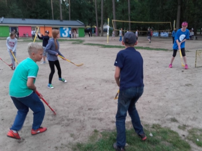 Dziś rano mieliśmy rozmowę na temat zdrowego trybu życia i higieny. Następnie odbyły się drużynowe gry sprawnościowe. Musieliśmy pracować w grupie, aby przetransportować wodę. Graliśmy sobie w „beczkę”. Po zajęciach była lekcja obrony przed czarną magią ze specjalnym magicznym profesorem. Uczyliśmy się jak przeżyć w świecie magów i świecie czarodziei. Po obiedzie graliśmy w unihokeja a potem puszczaliśmy Mega Bańki mydlane na różne sposoby. Na zakończenie dnia mieliśmy ognisko z kiełbaskami.