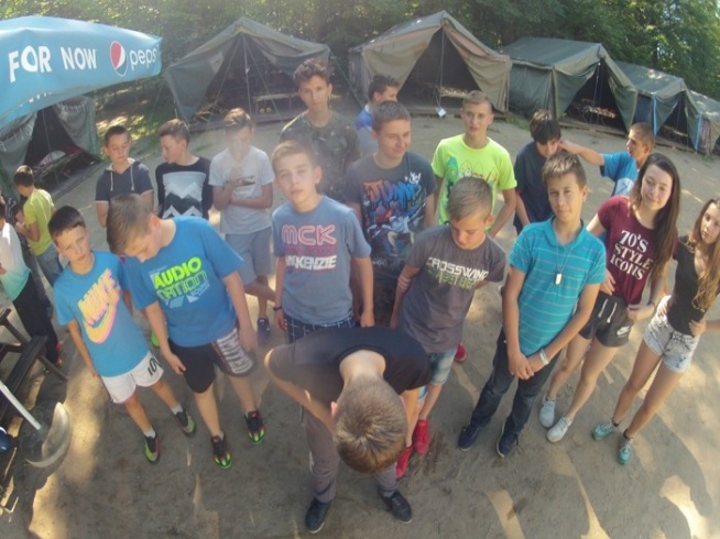 Po pysznym śniadaniu wybraliśmy się na emocjonujące Walki Gladiatorów. Później tworzyliśmy pamiątkowe bransoletki i rozegraliśmy mecz w Baloniadę. Następnie uczyliśmy się różnych chwytów, podczas zajęć z samoobrony. Dzień zakończyliśmy apelem.