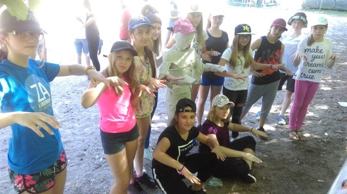 Dziś od rana układałyśmy piosenki obozowe, które później ciągle śpiewałyśmy. Potem udałyśmy się nad jezioro, gdzie kąpaliśmy się i opalaliśmy. Następnie odbyły się zajęcia, podczas których tworzyliśmy maski. W dniu dzisiejszy odbył się również apel, na którym śpiewałyśmy i tańczyłyśmy. Następnie poszłyśmy na zajęcia, na których robiłyśmy foto budki.