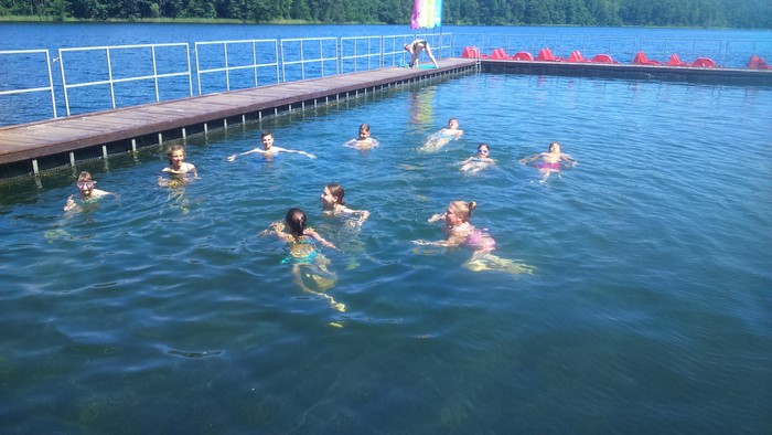 Po smacznym śniadanku udałyśmy się na zumbę, po której zagrałyśmy w Grę Francuską. Dzięki tej zabawie lepiej poznałyśmy ośrodek. Dzisiaj także korzystając z przepięknej pogody poszłyśmy na plażę, gdzie zażywałyśmy kąpieli w jeziorze. Po obiedzie robiłyśmy sobie maseczki oraz zagrałyśmy w baloniadę. Dzień zakończyłyśmy wspaniałą dyskoteką.
