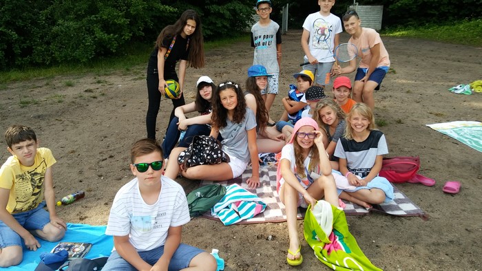 Dzień był bardzo udany. Z rana odbył się turniej w baloniadę. Graliśmy chłopaki kontra dziewczyny. Później lepiliśmy zamki z piasku, nie obyło się bez kąpieli w jeziorze. Następnie śpiewaliśmy w Cool Clubie znane przeboje. Po quizach i innych ciekawych zabawach tworzyliśmy bransoletki. Oby więcej takich ciekawych dni.