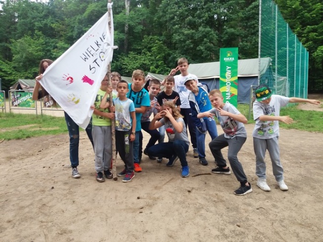 Dzisiaj dzień rozpoczęliśmy od gier integrujących grupę, jeszcze lepiej się poznając. Następnie stawiliśmy czoła wyzwaniu o zdobycie flagi. Korzystając z pojawiających się promieni słońca, udaliśmy się na plażę. Najbardziej podobały nam się skoki do rześkiej wody. Kolejną czekającą na nas atrakcją był Waterball, a następnie przeprawa kajakami bezburtowymi po jeziorze. Wieczorem uczyliśmy się sztuki przetrwania w trudnych warunkach. Poznaliśmy sztukę kamuflażu oraz budowania szałasów.