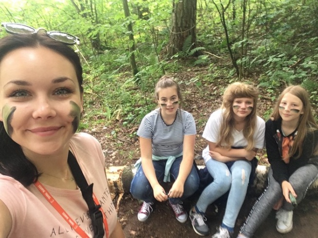 Dzisiaj po śniadaniu razem z innymi grupami wybraliśmy się do lasu na grę terenową. Stworzyliśmy flagę naszej grupy i budowaliśmy szałasy. W nich musieliśmy schować nasze dzieło, a następnie musieliśmy wykryć flagę przeciwników. Po obiedzie mieliśmy zajęcia z samoobrony, na których dowiedzieliśmy się jak należy bronić się przed napastnikiem. Bardzo fajne były zajęcia ze strzelania z procy.