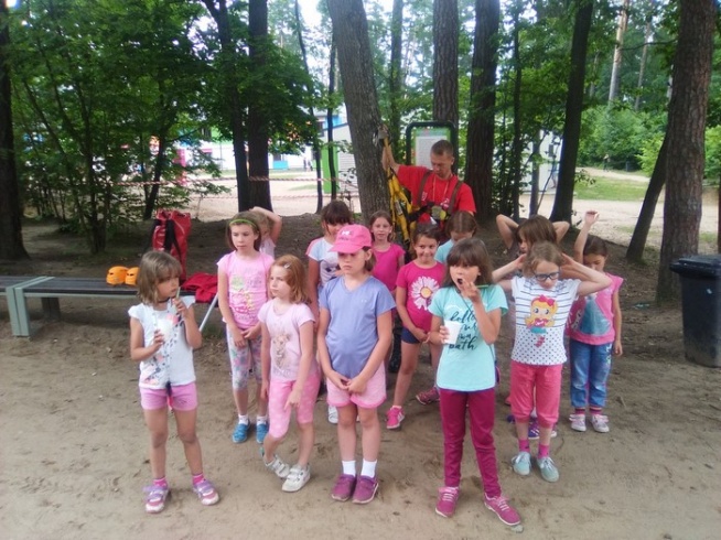 Dzień zaczął się fantastycznie! Rozpoczęliśmy go od wyprawy rowerkami wodnymi. Pogoda i humory nam dopisały. Następnie udaliśmy się do parku linowego, gdzie pokonywaliśmy trudny tor na wysokości. Spisaliśmy się świetnie! Po obiedzie rozwiązywaliśmy zagadki logiczne, a po nich lepiliśmy z gliny piękne dzieła. Dzień zakończyliśmy wspaniałym karaoke.