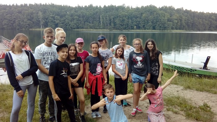 Pierwszy dzień programowy już za nami. Graliśmy w gry planszowe o niecodziennym rozmiarze XXL. Mało tego, pionkami w nich byliśmy my sami. Poza tym mieliśmy okazję zagrać w najpopularniejsze skandynawskie gry: Molkky i Kubb. Bardzo nam się one podobały. Oprócz gier uczyliśmy się podstawowych technik szyfrowania wiadomości. Wcieliliśmy się w rolę szyfrantów i wzięliśmy udział w tajnej misji kryptograficznej. Po pysznym obiedzie pływaliśmy kajakami turystycznymi po jeziorze Łęsk. Z kolei wieczorem bawiliśmy się na pierwszej kolonijnej dyskotece.