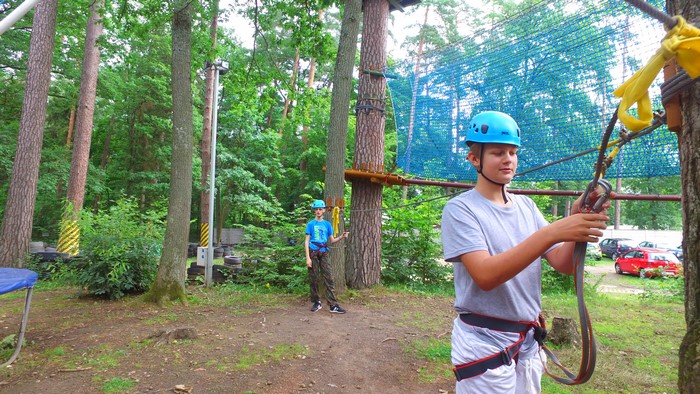Rano poszliśmy do parku linowego, a później popływać na kajakach turystycznych. Było ekstra, a pogoda nam sprzyjała. Po drugim śniadaniu poszliśmy do lasu na survival by uczyć się sztuki przetrwania. W dalszej części dnia wspinaliśmy się na ściankę, a potem poszliśmy na ognisko, gdzie zjedliśmy kiełbaski upieczone na ogniu. Gdy zrobiło się ciemno zagraliśmy w grę terenową Uwolnić VIP-a. Dzień minął szybko, bo odbyło się wiele ciekawych zajęć.