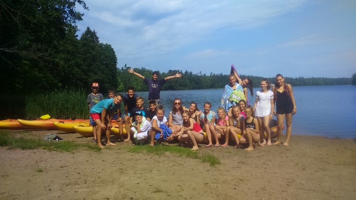 Dziś rano zagraliśmy we "wściekłe liski", było super. Później graliśmy w Grę Francuska, podczas której musieliśmy znaleźć odpowiedzi na pytania związane z naszym ośrodkiem. Po obiedzie poszliśmy wykapać się w jeziorze i pograć w gry planszowe na plaży. Po plażowaniu mieliśmy zajęcia z survivalu, które odbywały się w lesie. Mieliśmy za zadanie zbudować dwa szałasy i wyszło nam to bardzo dobrze.