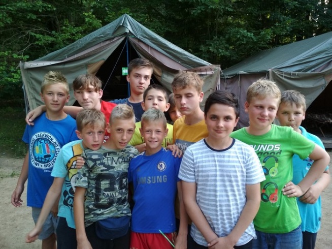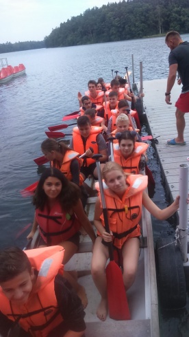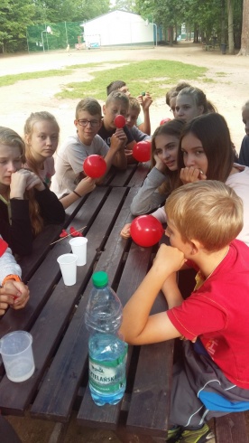 Dzisiaj od rana graliśmy w przeróżne gry w grupie. Dzięki nim wszyscy bardziej się zgraliśmy i lepiej poznaliśmy. Następnie odbył się turniej w piłkę nożną. Potem udaliśmy się na zajęcia z strzelania z wiatrówki, dzięki którym poćwiczyliśmy naszą celność. Wieczorem stworzyliśmy tratwy i przepłynęliśmy nimi jezioro.