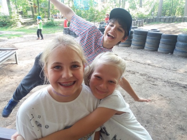 Dzisiaj po zjedzonym śniadaniu jeden z naszych kolegów udał się na pakiet, a my w tym czasie udaliśmy się do lasu na spacer, a także bawiliśmy się na placu zabaw. Po obiedzie wspinaliśmy się na wieżę ze skrzynek, a następnie graliśmy w mega gry. Wieczorem udaliśmy się na ognisko.