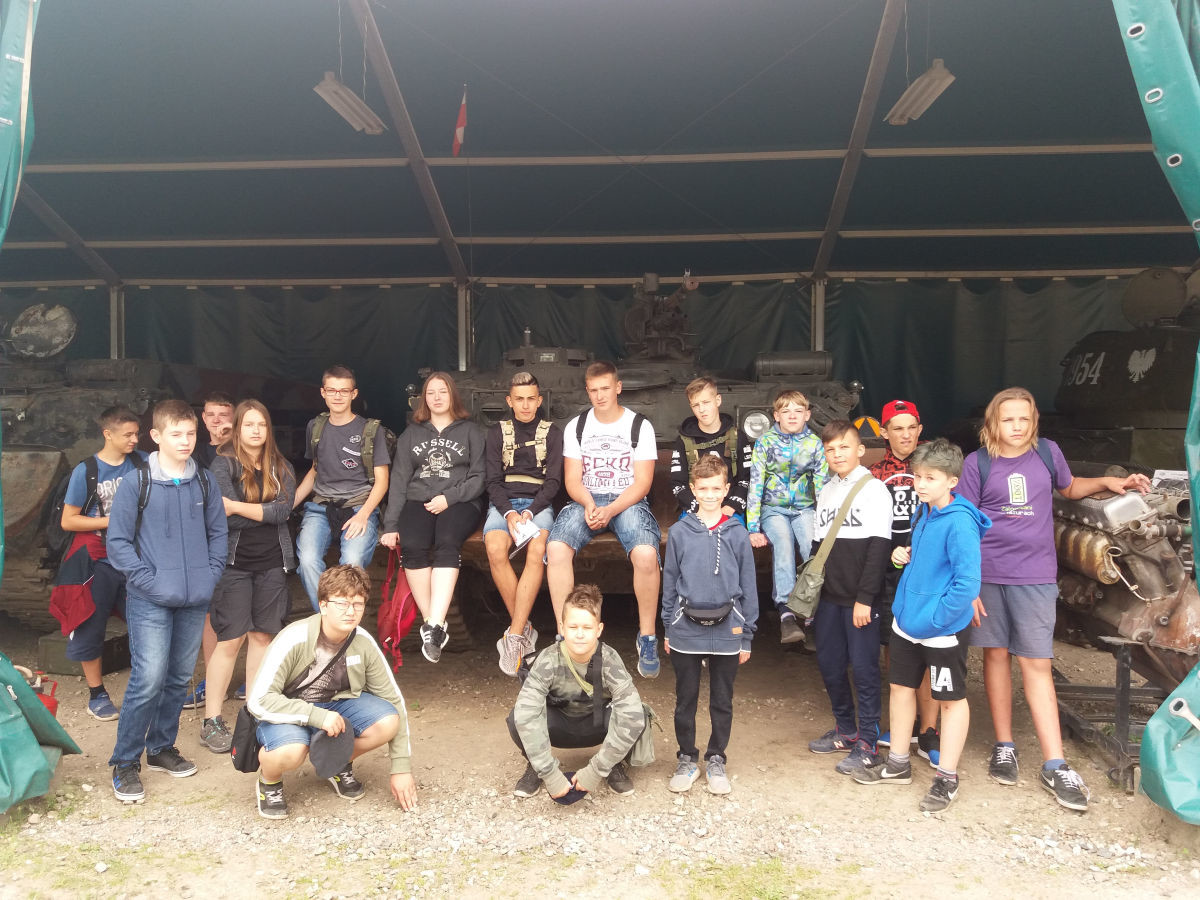 Dziś pojechaliśmy na wycieczkę do Mrągowa. Zwiedziliśmy Muzeum Sprzętu Wojskowego. Dowiedzieliśmy się wielu ciekawych rzeczy na temat militariów. Po obejrzeniu wszystkich maszyn czekała nas jeszcze przejażdżka wozem opancerzonym typu SKOT. Po obiedzie wybraliśmy się na plażę, gdzie pływaliśmy w jeziorze oraz spędzaliśmy wspólnie czas podczas gier integracyjnych. Następnie odbyły się zajęcia z łuków, gdzie mogliśmy wykazać się celnością i umiejętnościami strzeleckim. Dzień zakończyliśmy ogniskiem, gdzie wspólnie śpiewaliśmy i piekliśmy kiełbaski.
