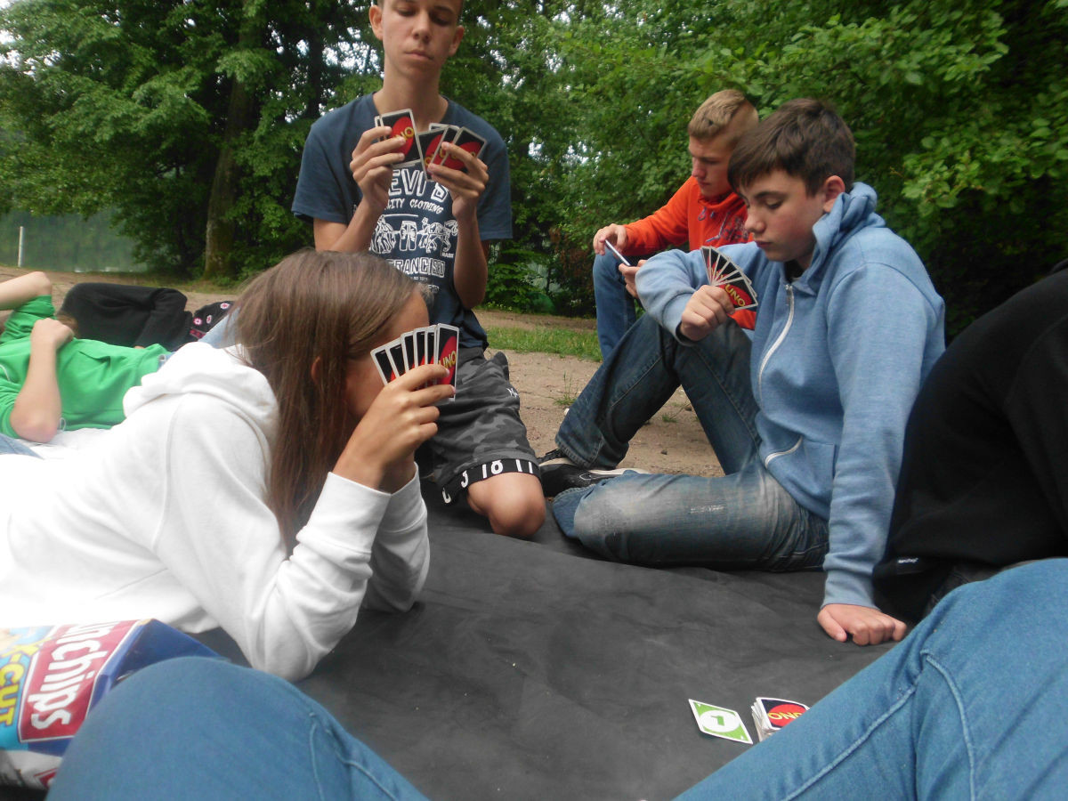 Dzień zaczęliśmy od gry w piłkę nożną oraz w kalambury. Następnie zorganizowaliśmy turniej na ściance wspinaczkowej. Później wszyscy aktywnie uczestniczyliśmy w strzelaniu z wiatrówki.
