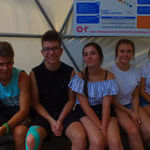 Poranek zaczęliśmy bardzo artystycznie. Wykonaliśmy graffiti według wcześniej wykonanych projektów. Później pływaliśmy rowerkami wodnymi po jeziorze Łęsk. Po obiedzie wykonaliśmy na płótnie naszą flagę. Zrobiliśmy to nietypowo, ponieważ malowaliśmy ją bez użycia rąk. Świetnie się bawiliśmy! Później skakaliśmy na eurobungee. Po kolacji wybraliśmy się na nocną grę terenową Mafia.