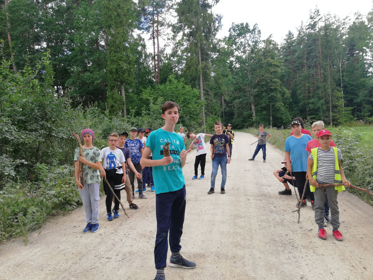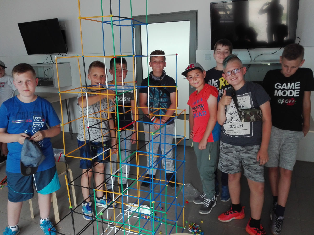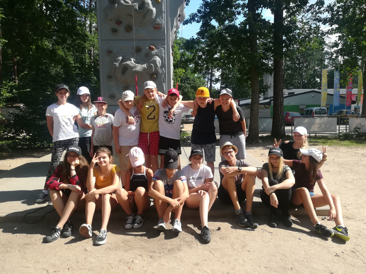 Dzień rozpoczęliśmy zabawą bańkami mydlanymi. Staraliśmy się zrobić tak duże bańki, aby zmieściły się w nich nasze koleżanki. Następnie udaliśmy się do parku linowego, gdzie pokonywaliśmy przeróżne przeszkody. Nie zabrakło kąpieli w jeziorze, która sprawiła nam dużo frajdy. Dzień zakończyliśmy tworzeniem magicznych tworów z papieru.