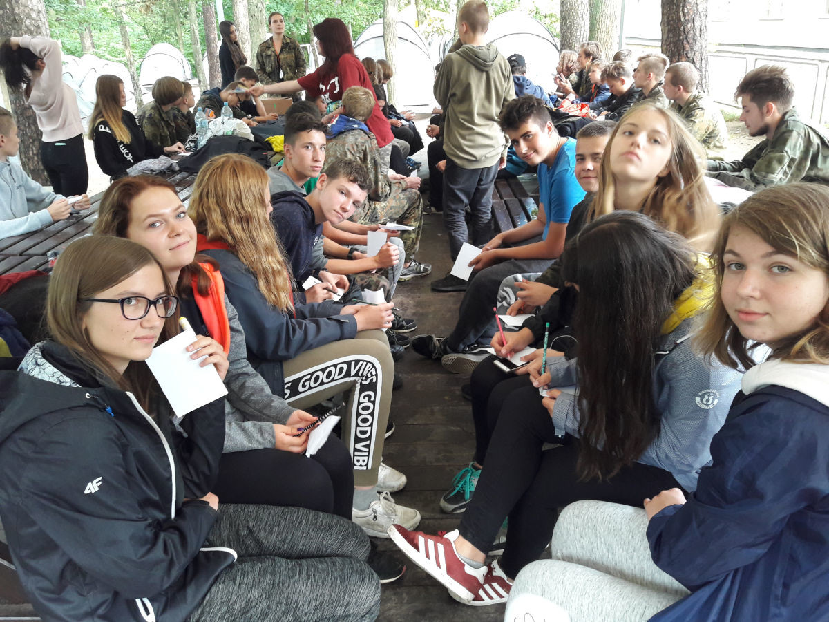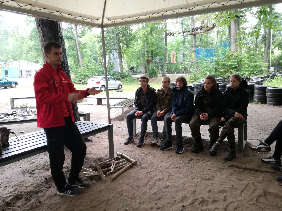 Rano wzięliśmy udział w zajęciach z survivalu. Poznaliśmy tajniki filtrowania wody oraz sposoby rozpalania ogniska. Ćwiczyliśmy rozpalanie ogniska za pomocą krzesiwa. Wspólnie wybraliśmy się na seans filmowy do Cool Clubu. Po pysznym obiedzie spędziliśmy czas grając w gry zespołowe na podobozie.