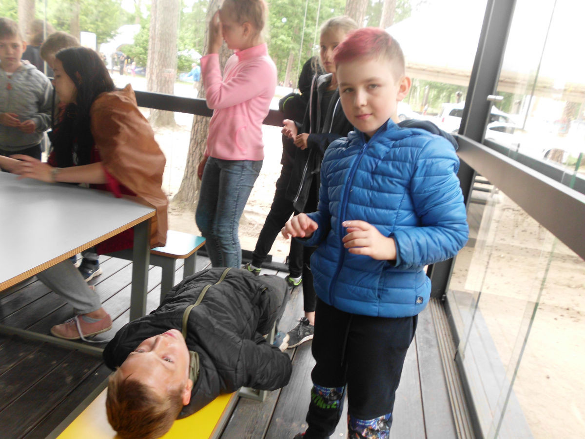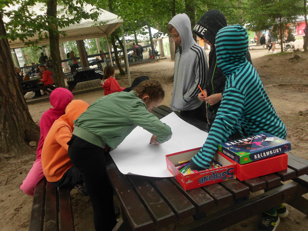 Dzisiaj do wielu z nas przyjechali rodzice na Piknik Rodzinny. Mogli być z nami na zajęciach. Później z naszą wychowawczynią graliśmy w różne gry. Byliśmy na parku linowym i każdy z nas pokonał różne trasy trudności. Później mieliśmy rozgrywkę paintballową. Koniec dnia spędziliśmy na plażowaniu nad jeziorem Łęsk.