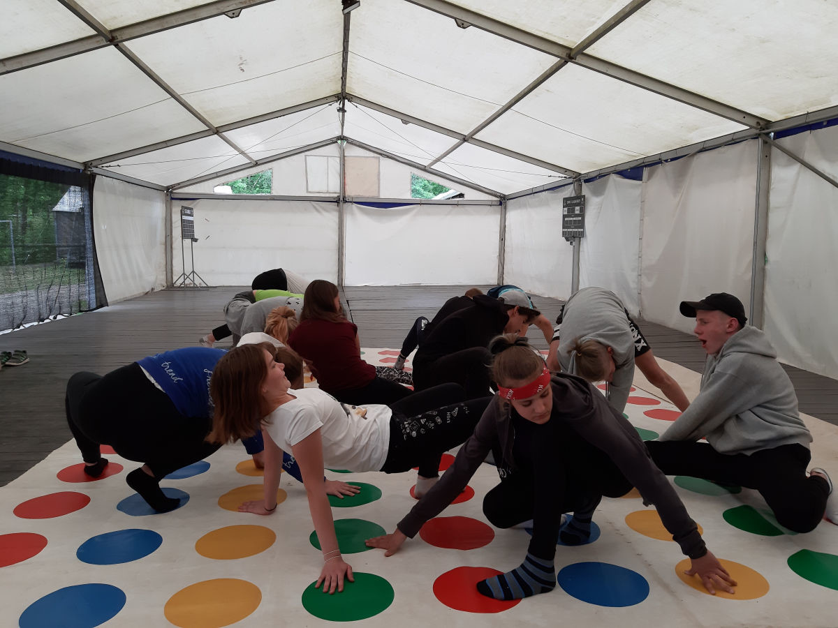 Dzisiaj było bardzo ciekawie. Dzień rozpoczęliśmy grą paintballową na ośrodku. Później mieliśmy turniej drużynowy w różnych grach kooperacyjnych. Później pograliśmy w gry planszowe w rozmiarze XXL. Po obiedzie poszliśmy na kajaki. Po powrocie zagraliśmy w grę terenową Mazurska Pułapka.