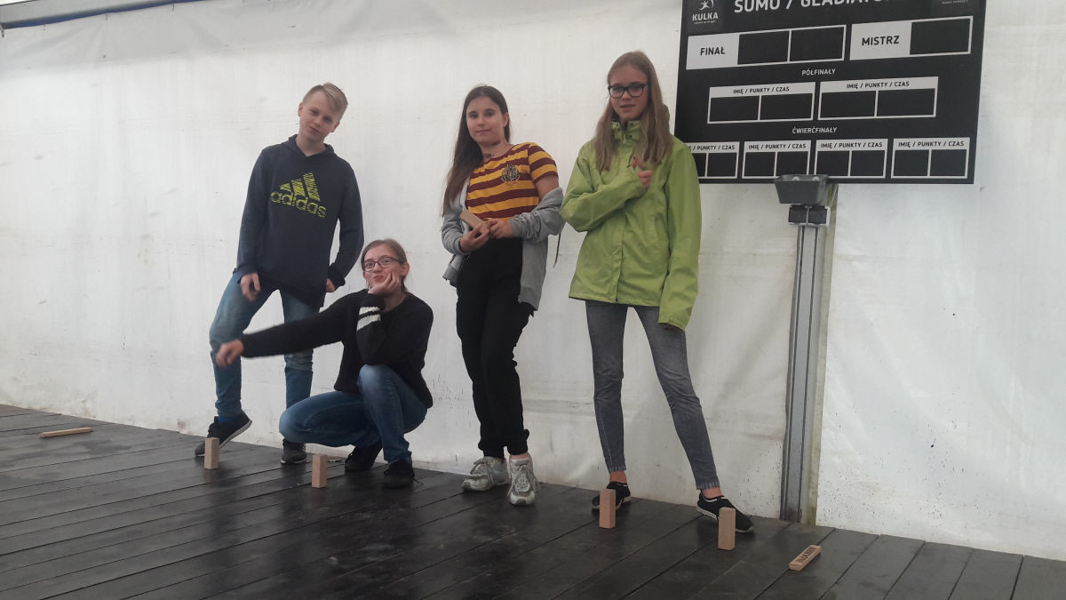 Dzisiejszego poranka staliśmy się Rzymianami na arenie i dzierżąc wielkie lance stoczyliśmy pojedynek gladiatorów. Jak chomiki w ogromnej kuli ślizgaliśmy się też po tafli basenu. Mistrzem zabawy został ten, kto najdłużej utrzymał się na dwóch nogach. Nauczyliśmy się grać trzy piosenki za pomocą muzycznych rurek. Do końca dnia zacieśnialiśmy więzy grając w gry integracyjne.
