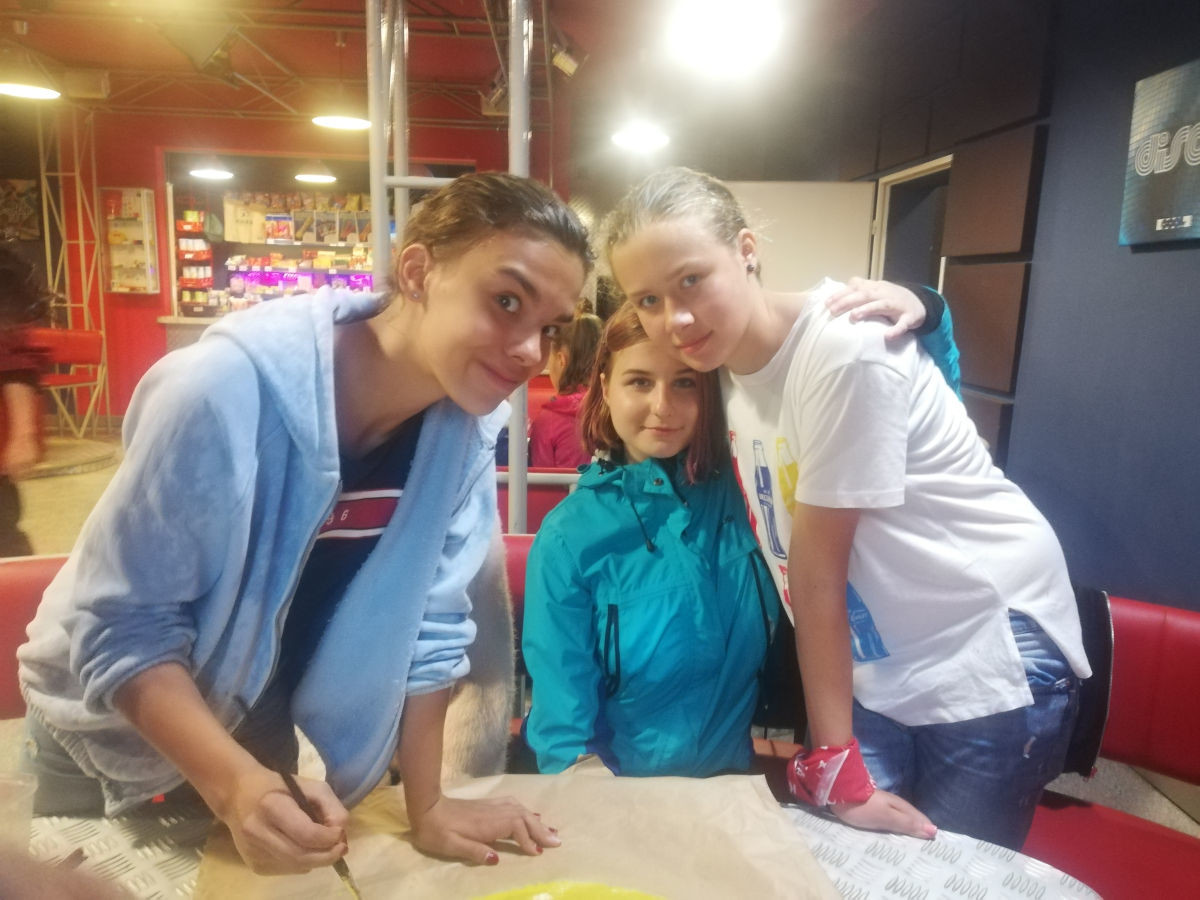 Dzień rozpoczęliśmy od sprawdzenia swojej koncentracji i umiejętności rozwiązywania łamigłówek. Udało się nam rozwiązać je wszystkie w mgnieniu oka! Zaraz potem ruszyliśmy na seans filmowy. Następnie próbowaliśmy utrzymać równowagę w środku kuli na wodzie. Było super! Potem udaliśmy się na zajęcia recyklingu artystycznego, na których tworzyliśmy coś z niczego. Swój wieczór zakończyliśmy rozgrywkami w emocjonującą grę mafia.