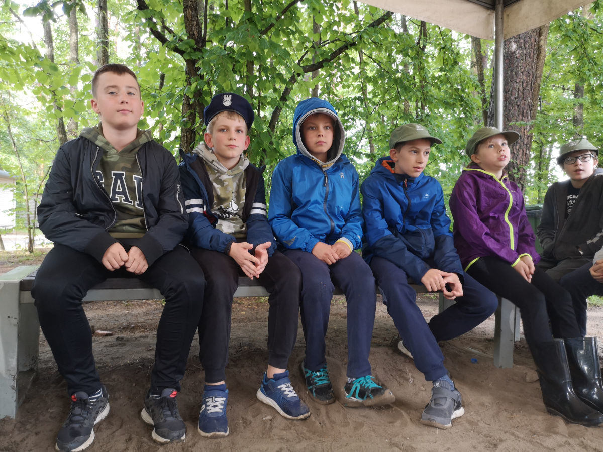 Po śniadaniu tworzyliśmy laurki dla ratowników. Każdy z zaangażowaniem zabrał się do pracy. Powstały kreatywne prace. Bawiliśmy się w bystre oko. Jedna osoba zmieniła coś w swoim stroju, a druga, która była oddalona od grupy, zgadywała co to była za zmiana. Następnie udaliśmy się do Cool Clubu na film o dinozaurach. Oglądaliśmy z zaciekawieniem. Później strzelaliśmy z wiatrówek. Na koniec dnia poszliśmy na nocną grę terenową Mazurska Pułapka.