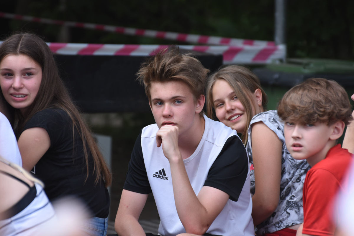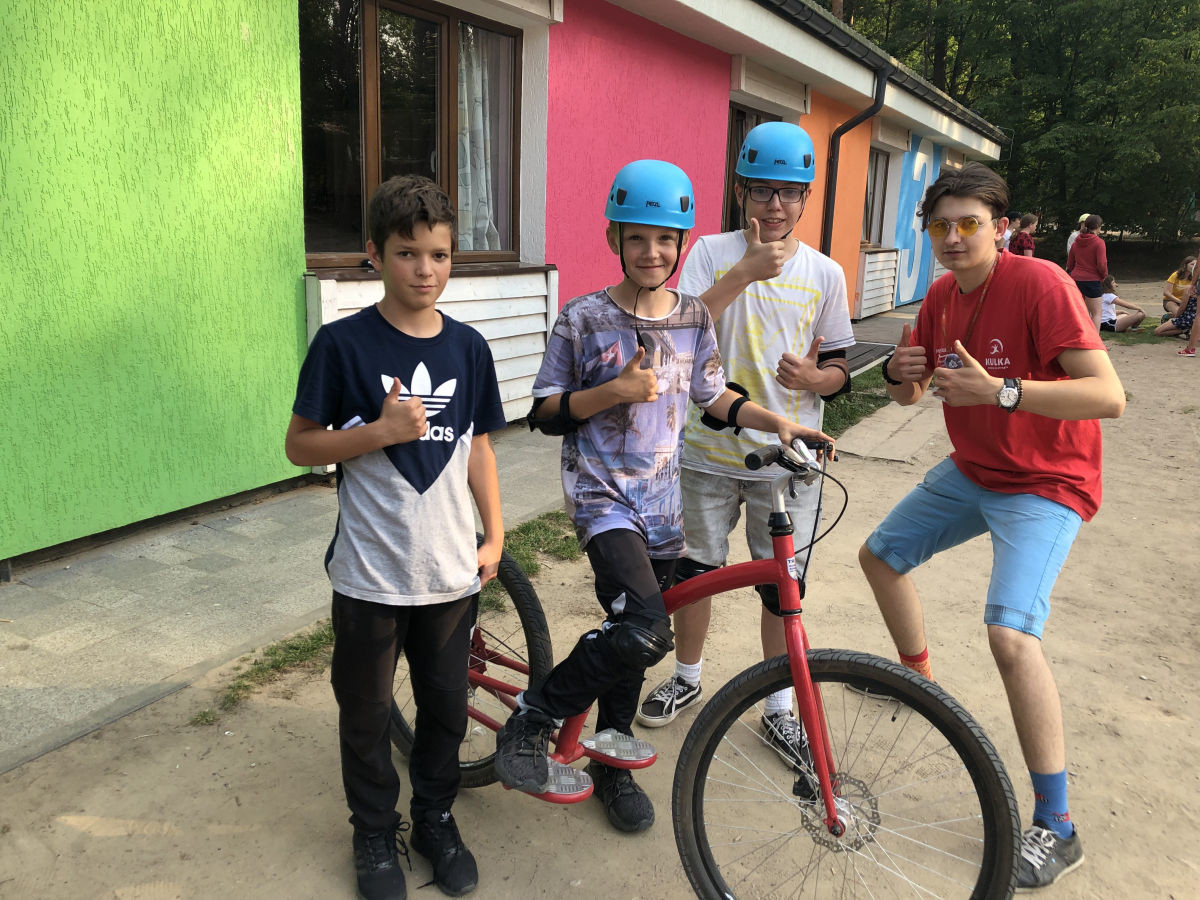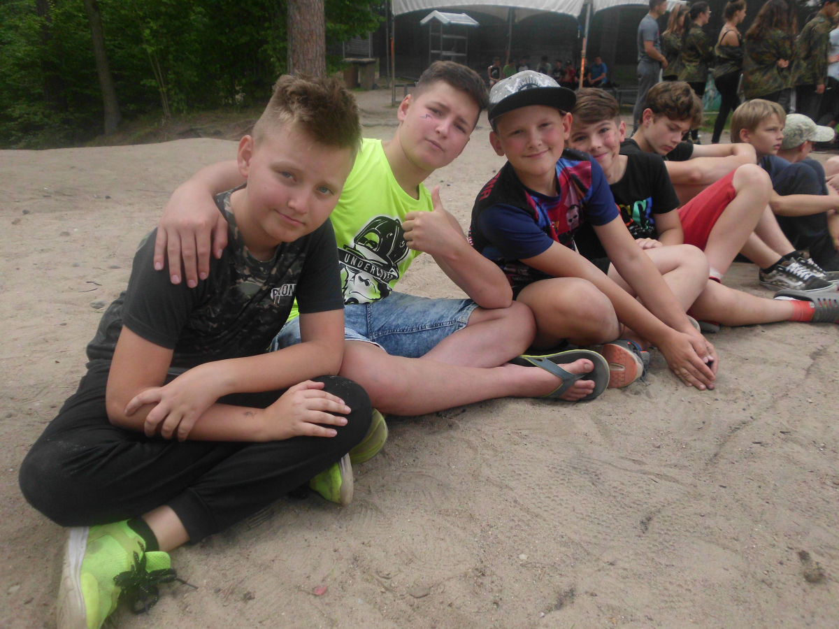 Dzień rozpoczęliśmy od spędzania czasu na naszej plaży, na której mogliśmy zażyć kąpieli a także opalać się na piasku. Później udaliśmy się na survival do lasu, w czasie którego poznaliśmy sposoby rozpalania ognia oraz pozyskiwania wody w warunkach survivalowych. Następnie tworzyliśmy swoje własne tratwy, na których pokonywaliśmy jezioro Łęsk. Po obiedzie tworzyliśmy bańki w rozmiarach XXL, które sprawiły nam wiele radości. Dzień zakończyliśmy dyskoteką z konkursem talentów.