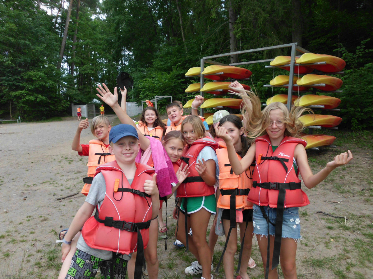 Dziś naszą pierwszą atrakcją była ścianka wspinaczkowa. Na najtrudniejszą ściankę udało się wejść Amelce i Idze. Później korzystaliśmy z pięknej pogody kąpiąc się w jeziorze. Następnie stoczyliśmy walkę gladiatorów. Po obiedzie wyruszyliśmy na wyprawę kajakami. Następnie czekała nas kolejna walka, tym razem sumo. Wieczorem bawiliśmy się na dyskotece.