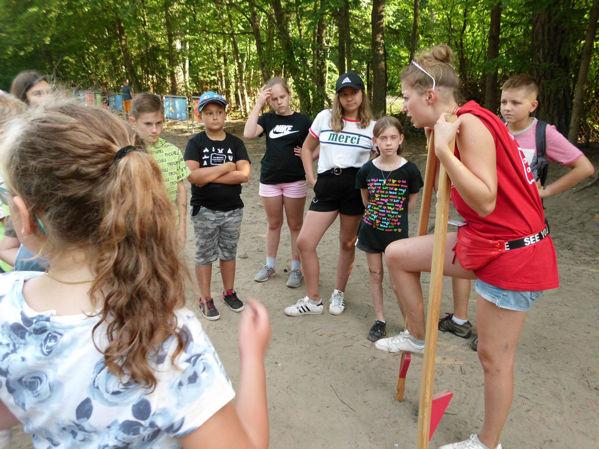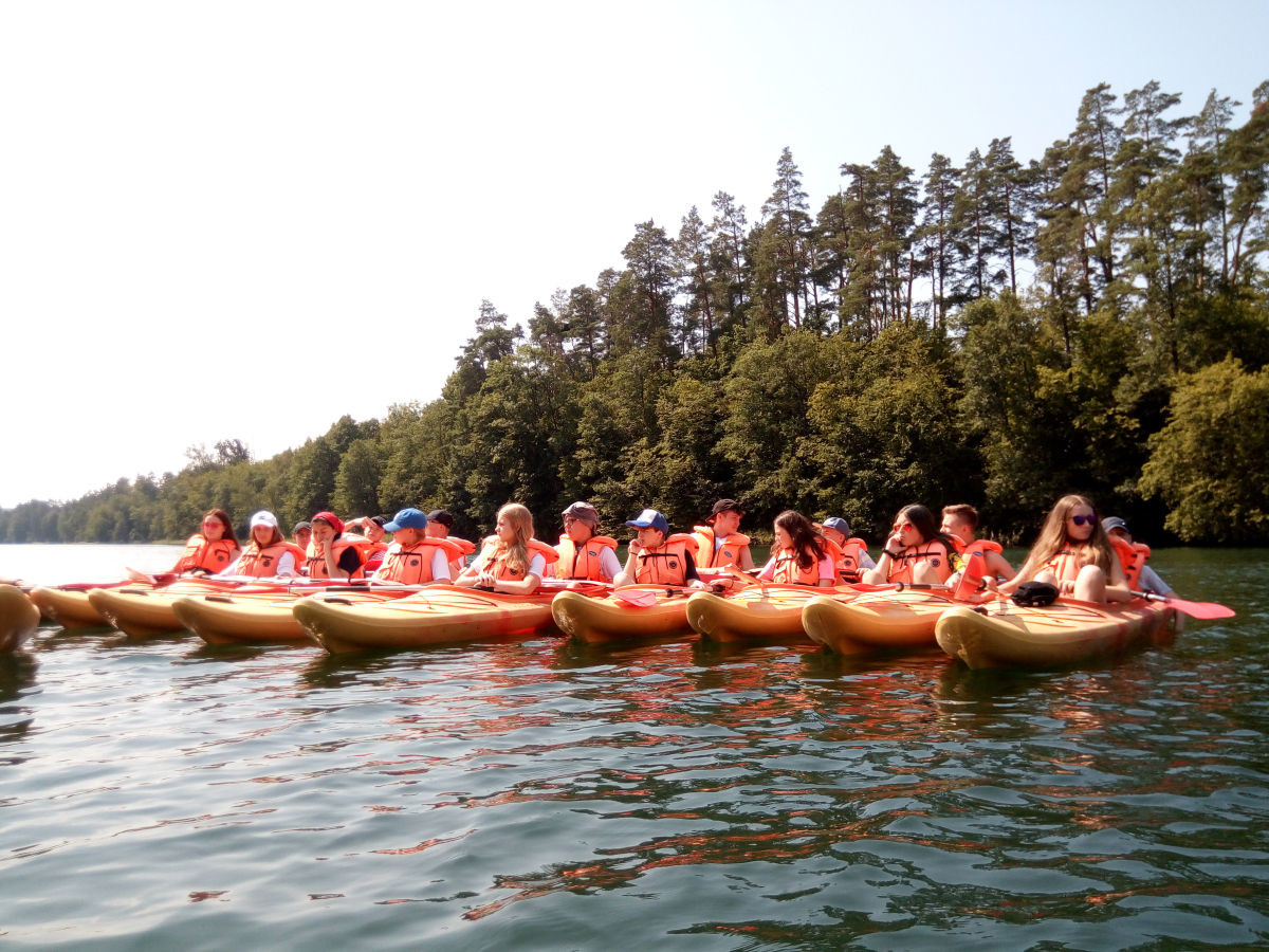 Nasz dzień rozpoczęliśmy od rejsu przez jezioro pojedynczymi kajakami typu sit on top. Następnie każdy z nas zaprojektował i wykonał swoją własną przypinkę, która będzie świetną pamiątką z wakacji spędzonych w Kulce. Potem wspólnie udaliśmy się na plażę, by zażywać kąpieli słonecznych i zrelaksować się przed dalszą częścią dnia. Po obiedzie każdy z nas przejechał się na dziwnym rowerze. Poczuliśmy się jak w cyrku! Wieczorem całą grupą zrobiliśmy flagę obozową, która idealnie reprezentowała całą naszą gromadę. Dzień zakończyliśmy integracyjnymi zabawami z innymi grupami.