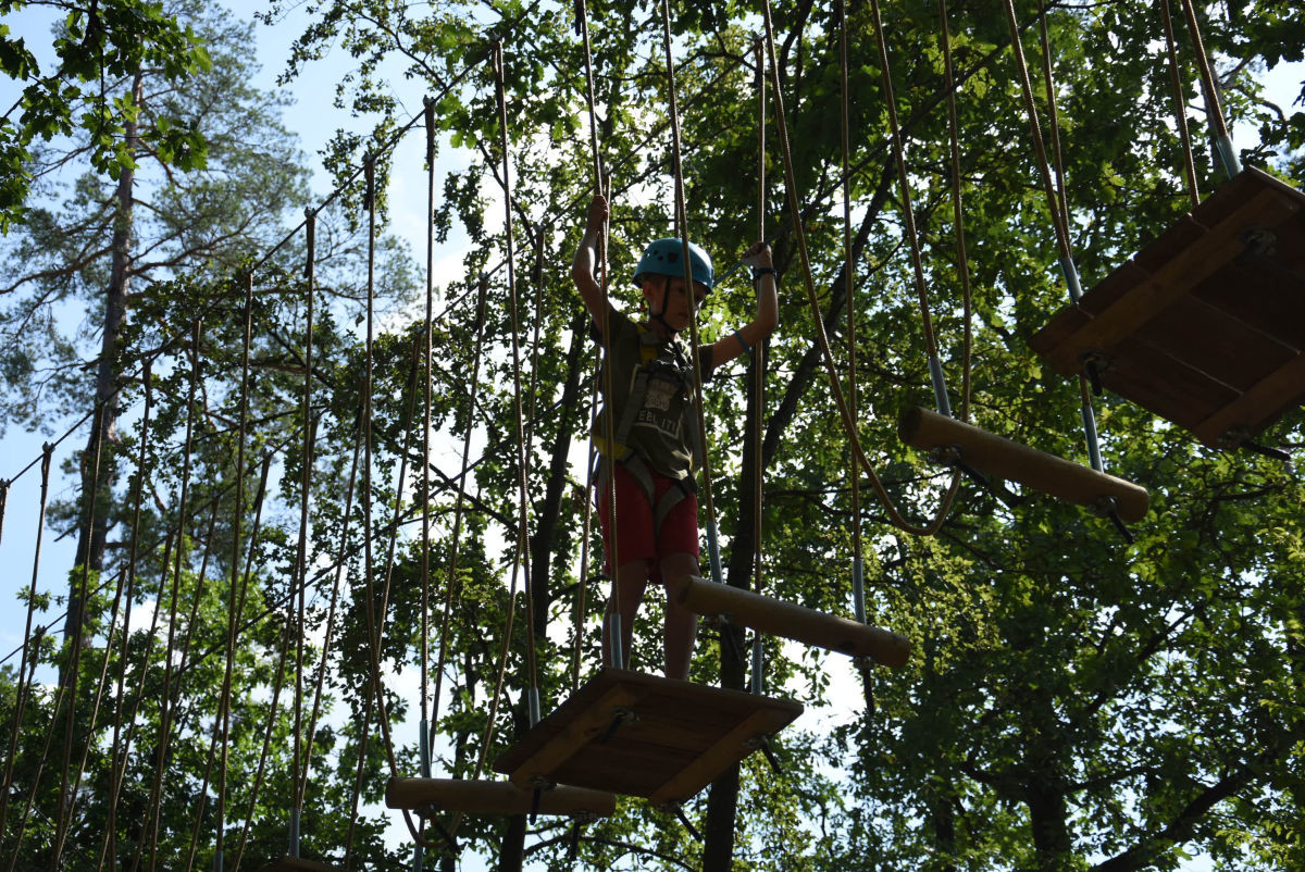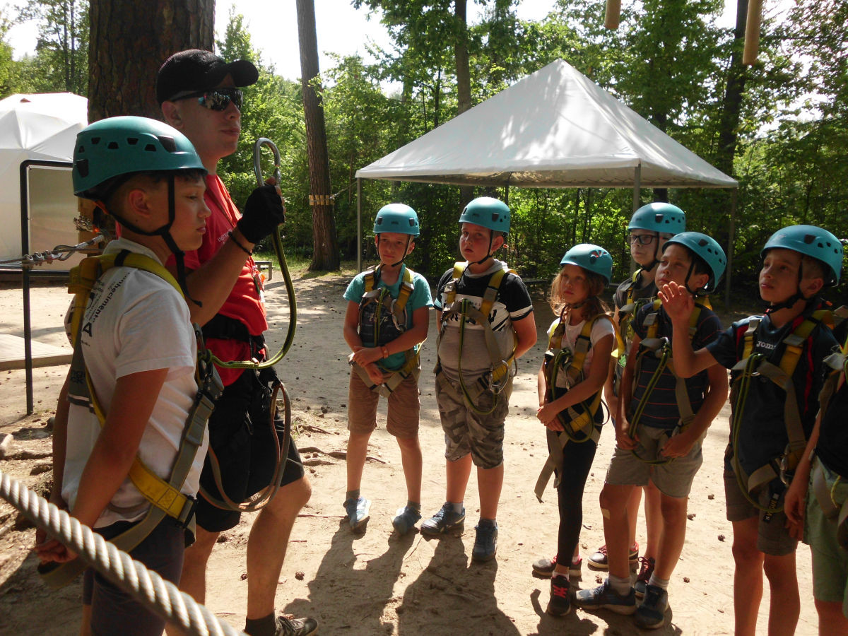 Piąty dzień zaczęliśmy na strzelnicy. Ćwiczyliśmy tam naszą celność w strzelaniu do tarczy z łuków, by następnie zagrać w Archery Challenge. Po krótkiej przerwie wybraliśmy się na przyjemny rejs rowerkami wodnymi po pięknym jeziorze Łęsk. Po obiedzie graliśmy w balonadę. Wieczorem wybraliśmy się na park linowy, podczas którego mogliśmy poczuć się jak prawdziwi alpiniści.