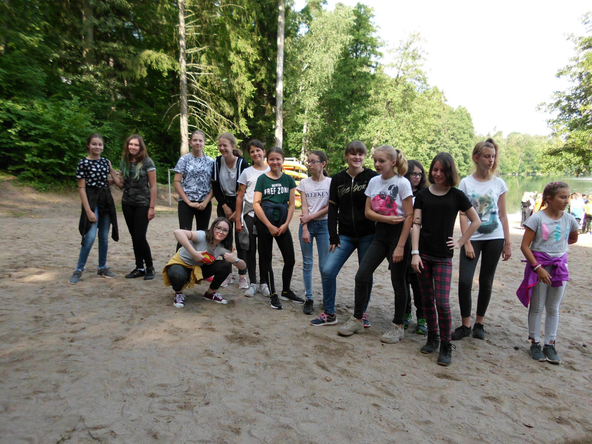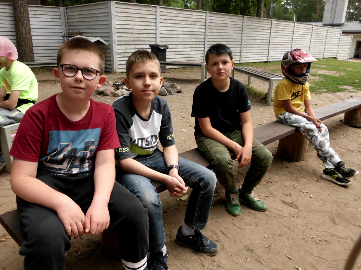 Swoją przygodę zaczęliśmy od podniebnych akrobacji na eurobungee. Później graliśmy w zbijaka i budowaliśmy gigantyczne budowle z patyczków. Wybraliśmy się kajakami w rejs po jeziorze Łęsk, w trakcie której ratownik pokazał nam ciekawe miejsca. Po południu graliśmy w bardzo duże bierki, układaliśmy jengę z większych klocków niż my. Graliśmy też w ogromnego twistera.