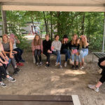 Dzisiaj od rana poznawaliśmy swoje imiona. Następnie wsiedliśmy na smoczą łódź, by powiosłować w rytm bębna. Kiedy wróciliśmy na brzeg mogliśmy oddać się kąpielom w jeziorze, plażowaniu i grze w siatkówkę. Po obiedzie mieliśmy okazję dokupić sobie zajęcia fakultatywne.
