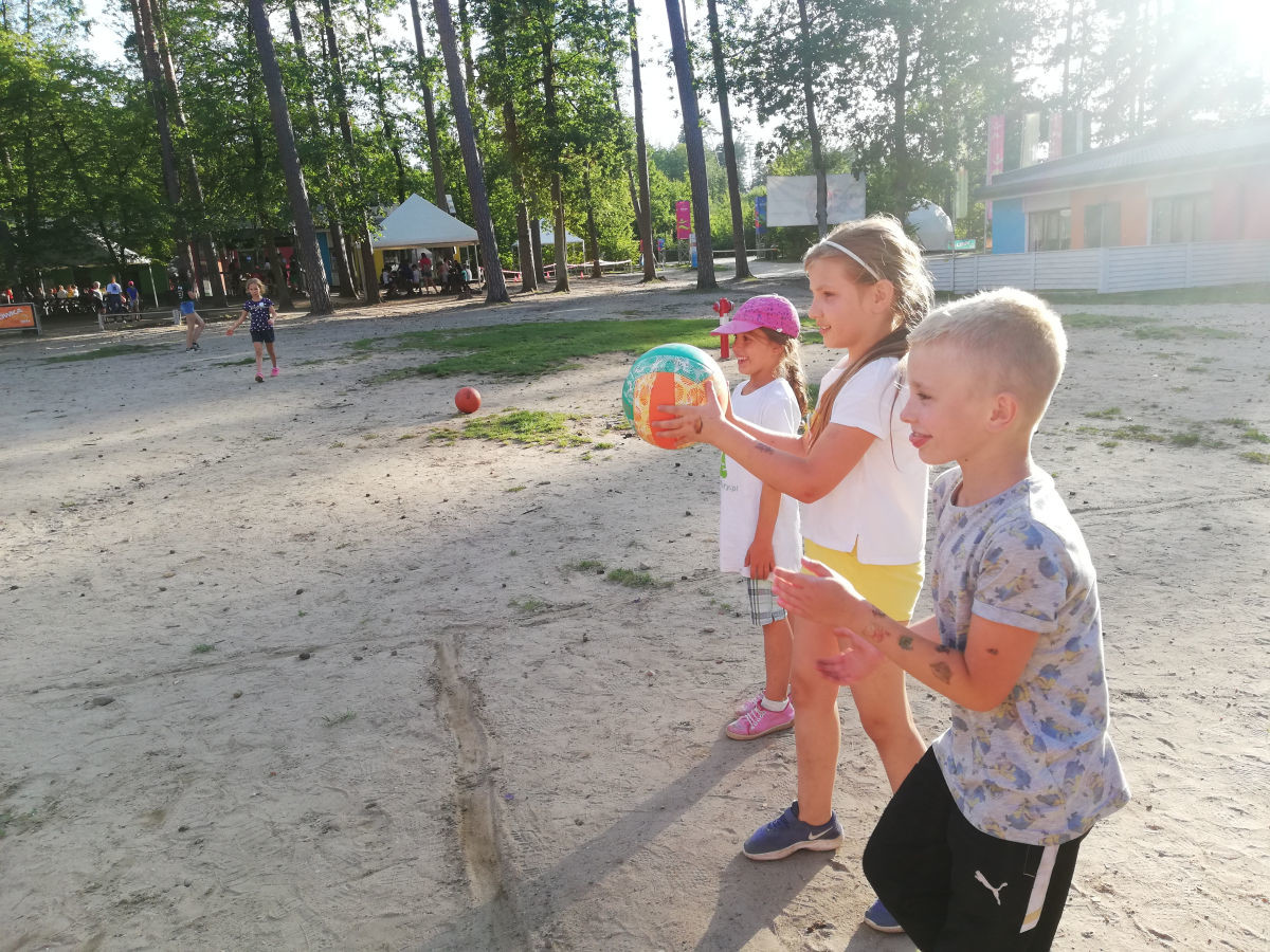 Od rana spędzaliśmy miło czas na kąpielisku. Po południu poszliśmy na zajęcia Ale Cyrk, w trakcie których spróbowaliśmy swoich sił w jeździe na dziwnym rowerze i chodzeniu na szczudłach. Po obiedzie graliśmy w gry planszowe i siatkówkę.