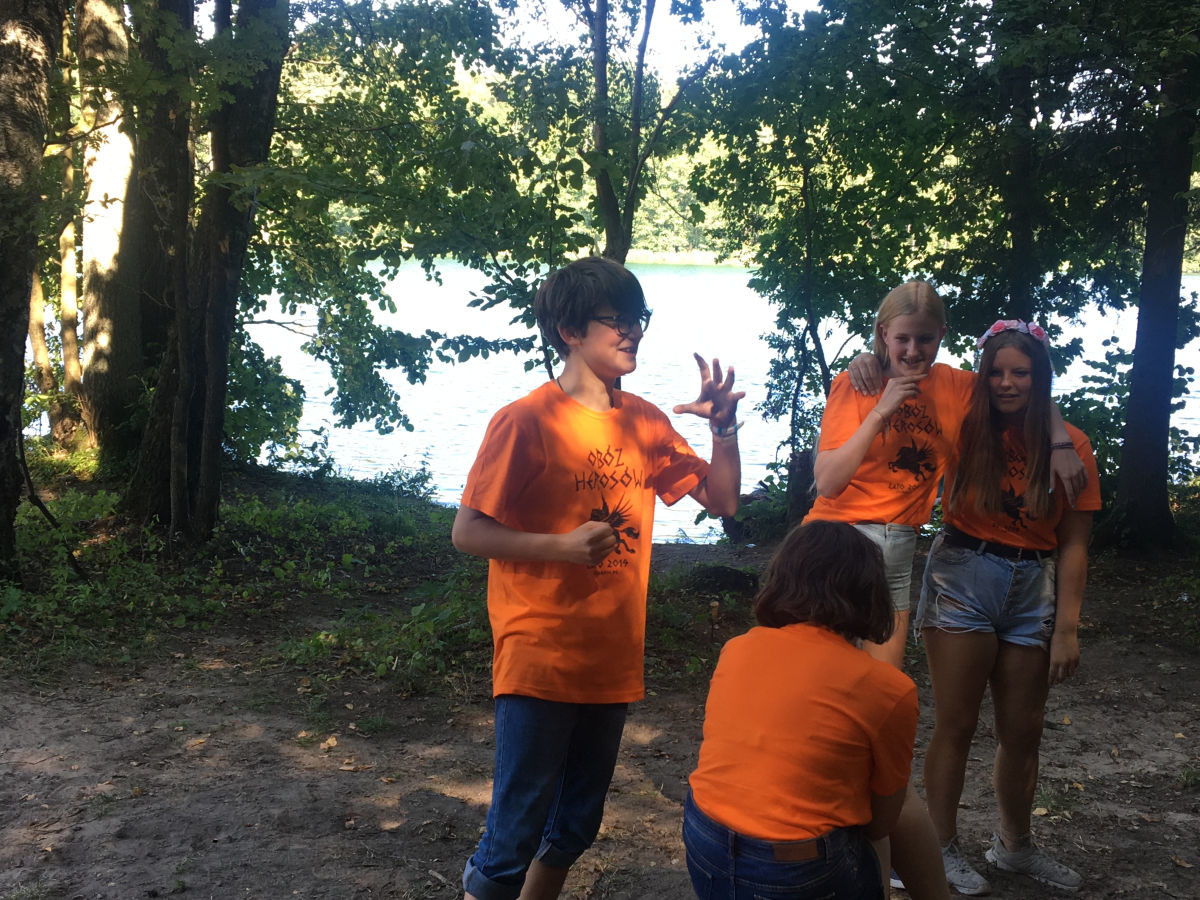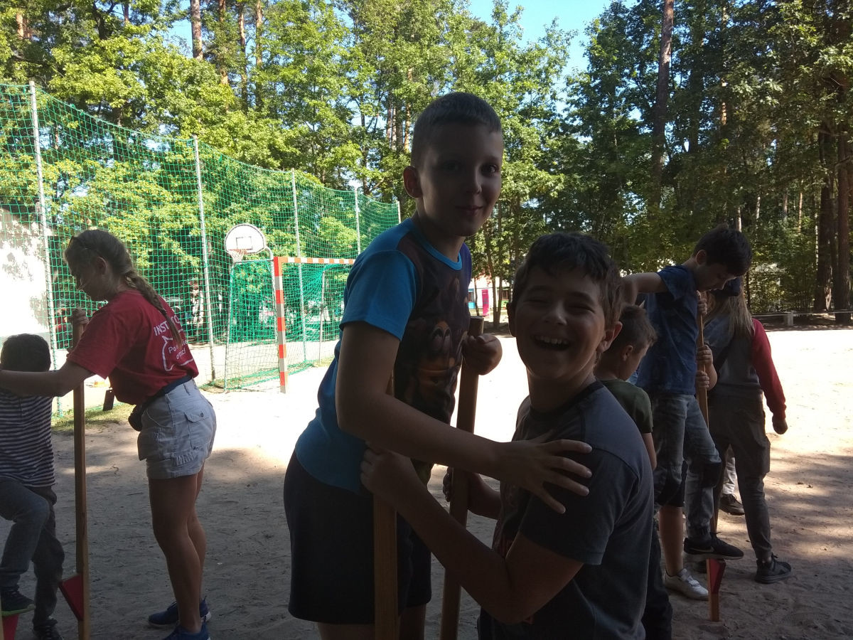 Od rana fantastycznie bawiliśmy się biegając w środku kuli w waterballu. Następnie poznaliśmy gry z całego świata i zrobiliśmy wystawę naszych prac wykonanych w czasie kolonii. Po południu kąpaliśmy się w jeziorze i bawiliśmy na plaży, wzięliśmy udział w grze podsumowujące cały obóz i wygłupialiśmy się na ostatniej wspólnej dyskotece!