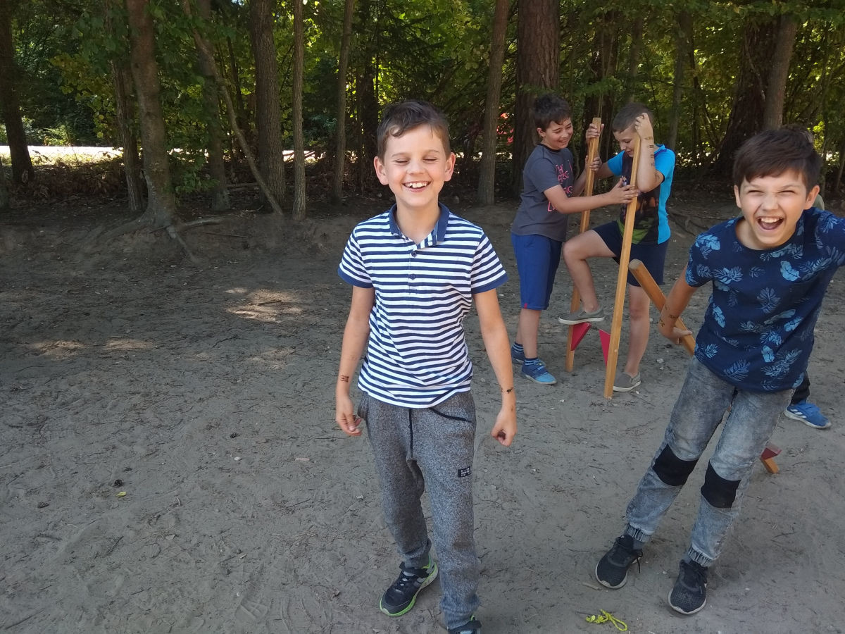 Dzień zaczęliśmy od ekscytujących walk gladiatorów. Potem braliśmy udział w Archery Soft, czyli strzelaliśmy z łuków ze strzałami z gumową przyssawką. Następnie korzystaliśmy ze słonecznej pogody na plaży i kąpaliśmy się w jeziorze. Po południu przechodziliśmy przez pole minowe z wykrywaczem metalu, co było świetną atrakcją. Następnie braliśmy udział w zabawach z wychowawcą. Dzień zakończyliśmy apelem pożegnalnym i udaną dyskoteką.