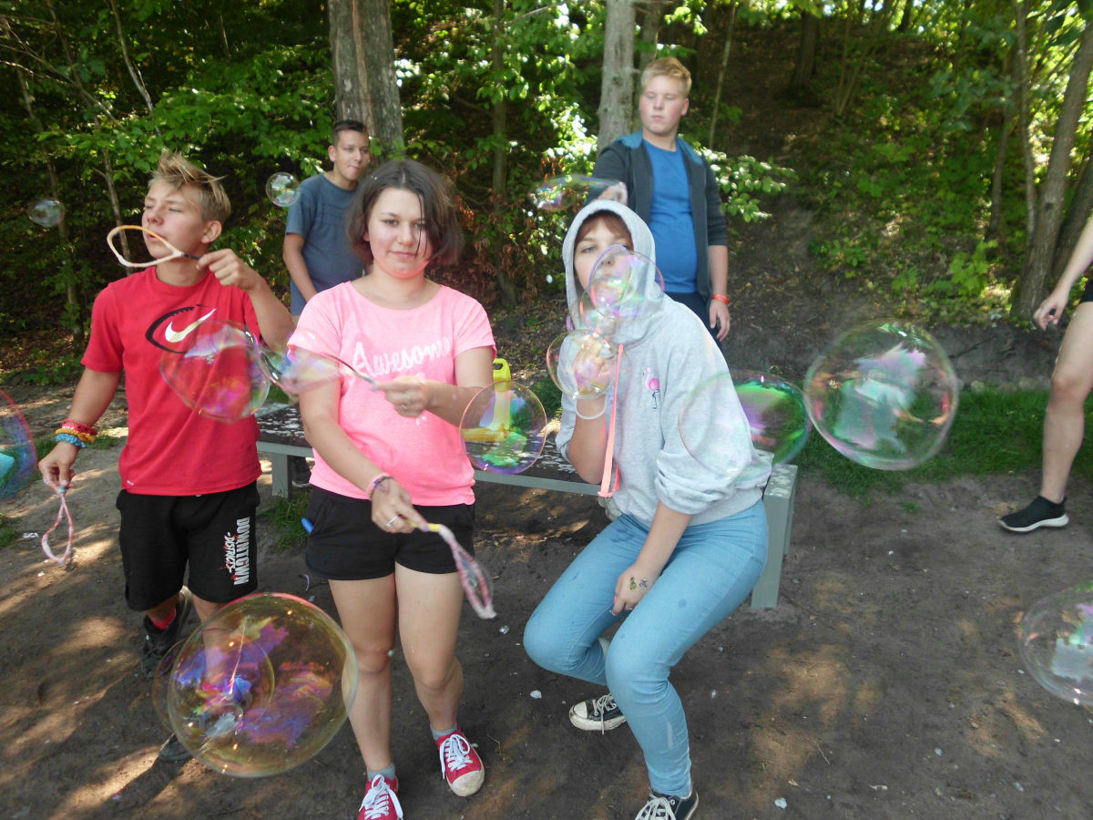 Dzień rozpoczęliśmy puszczaniem baniek mydlanych w rozmiarze XXL wraz z animatorem. Następnie odbyły się zajęcia z doskonalenia technik pływackich w kąpielisku na ośrodku. Wieczór spędziliśmy na apelu pożegnalnym oraz zabawie na ostatniej wspólnej dyskotece.