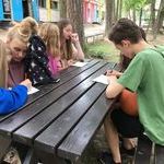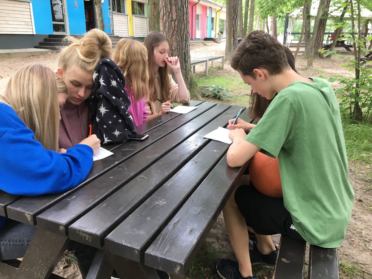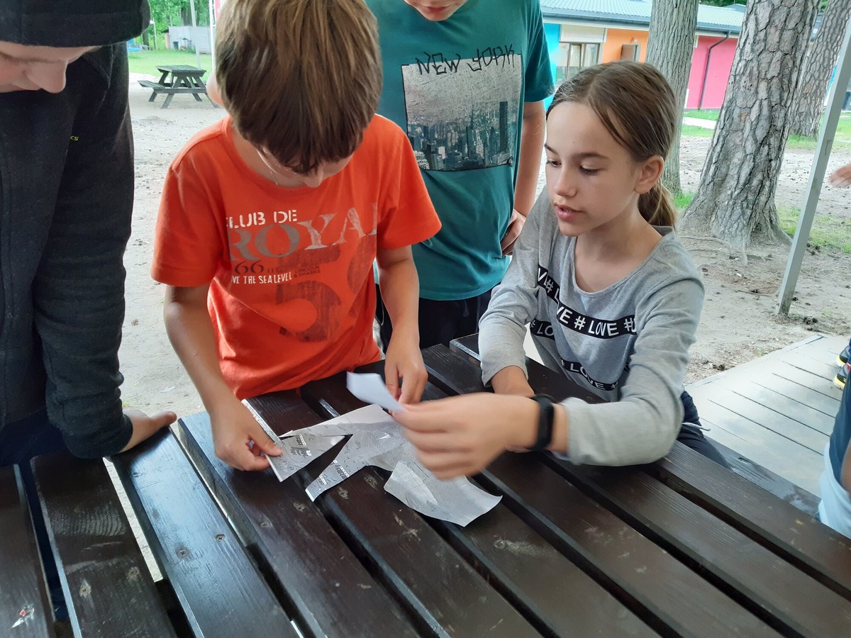 Dzisiejsza niedziela rozpoczęła się od plażowania. Mieliśmy możliwość kąpania się w jeziorze. Graliśmy w gry i rozmawialiśmy odpoczywając. W następnej kolejności tworzyliśmy melodie poprzez bum bum rurki. Było bardzo sympatycznie i zabawnie. Graliśmy także w mafię oraz czarne historie. Bardzo lubimy te gry. Na koniec dnia nauczyliśmy się sztuki szyfrowania podczas zajęć z enigmy.