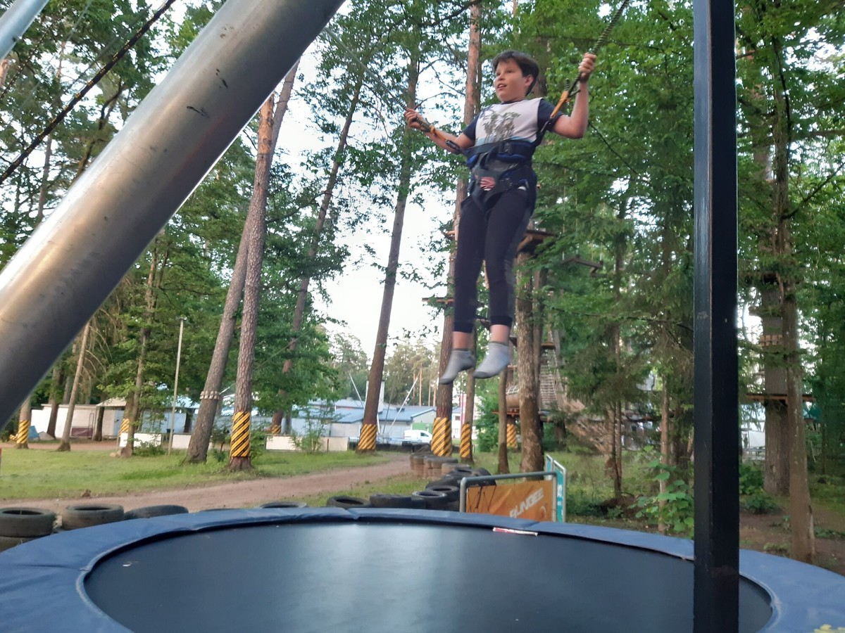 Dzień rozpoczęliśmyod gry w zbijaka. Była świetna zabawa, ponieważ od rana zaczęliśmy dynamicznie. Po krótkim odpoczynkuzagraliśmy w piłkę nożną. Następnie udaliśmy się na plażę, żeby się poopalać i popływać. Poza tym odpoczynek, po intensywnym poranku, nam się należał :). Po obiedzie nie mogło zabraknąć gry w siatkówkę, to nasza ulubiona gra na kulkowym boisku. Dzień zakończyliśmy zabawami na parku linowym.