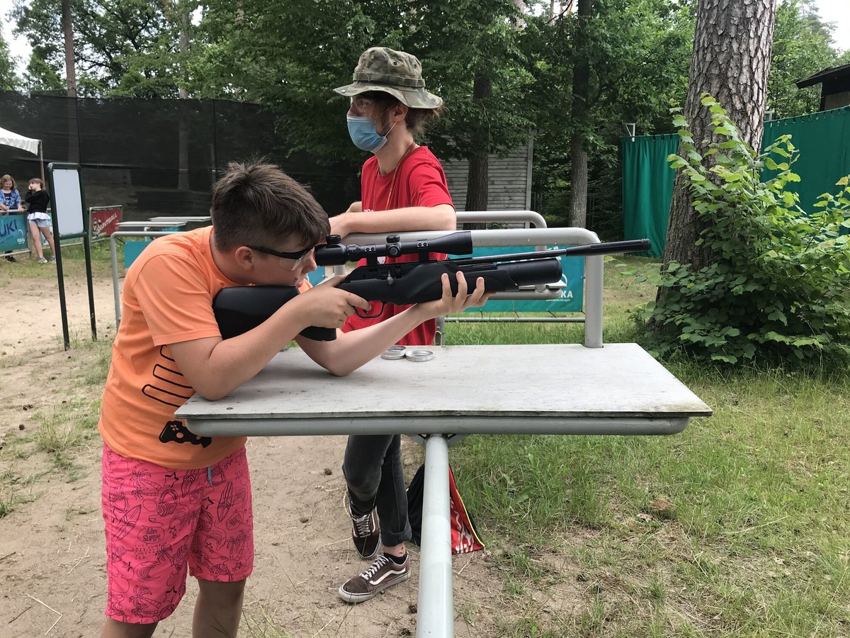 Dzień zaczęliśmy od nauki strzelania z wiatrówek. Na początku celność nie była naszym atutem, ale pod koniec treningu, nie było nam równych. Popołudnie upłynęło nam na plażowaniu, gry w water polo oraz spływie kajakowym. Kąpielisko jest super i daje wiele możliwości. Następnie graliśmy w błędny azymut posługując się kompasami. Na koniec uczyliśmy się używać wiatrówek z napędem sprężynowym!