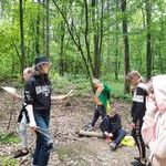 Dzień rozpoczęliśmy wyprawą do lasu. Odbyliśmy tam zajęcia survivalove, na których dowiedzieliśmy się m.in. o sposobach zdobywania pożywienia w warunkach polowych, co to jest racja żywnościowa SRG oraz poznaliśmy sposoby kamuflażu. Następnie wybraliśmy się na zajęcia linowe, gdzie wspinaliśmy się na wieże ze skrzynek. Nasza najwyższa wieża liczyła dwanaście skrzynek. Dzień zakończyliśmy zabawą taneczną.