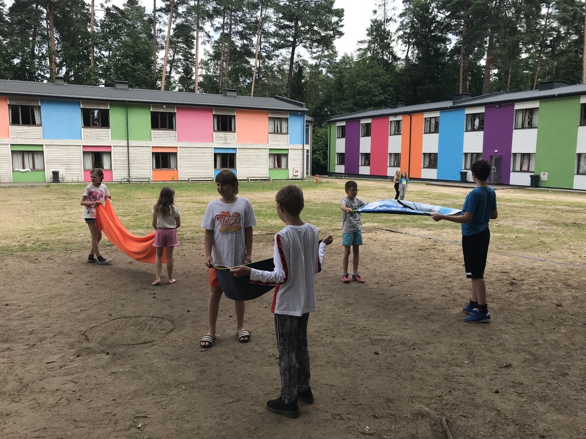 Dziś rano mieliśmy naprawdę świetne zajęcia, mianowicie baloniadę. Rzucaliśmy balonami wypełnionymi wodą, a złapać je musieliśmy ręcznikami, tak żeby się nie rozbiły. Później graliśmy w różne gry takie jak ziemniak, mafia w miasteczku, kolory i inne. Następnie malowaliśmy na ogromnym formacie różne rysunki. Sami byliśmy cali w farbie i było naprawdę super! Wieczorem zagraliśmy mecz siatkówki, a potem poszliśmy spać. To był naprawdę fajny dzień.