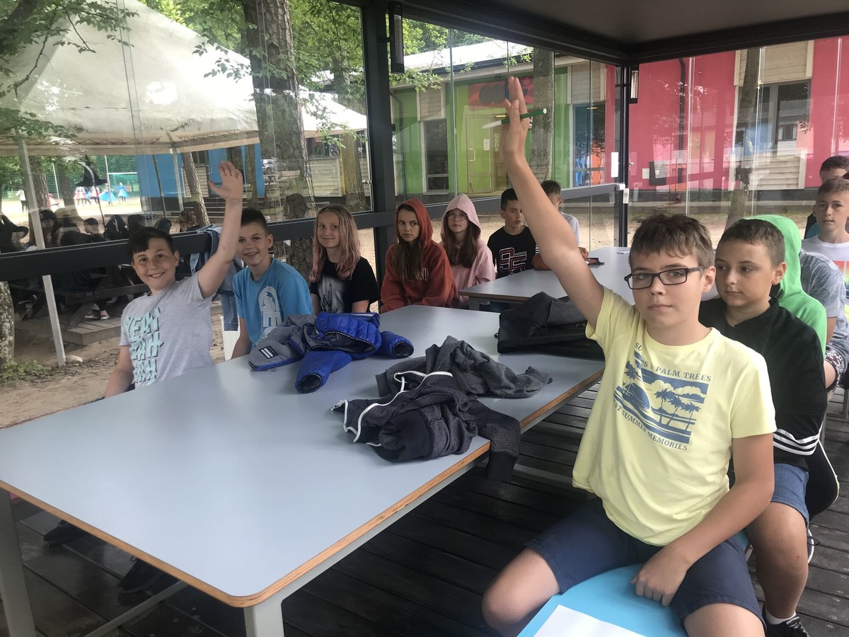 Dzień zaczęliśmy śpiewająco od zajęć karaoke, potem udaliśmy się na plażę, gdzie mogliśmy trochę odpocząć. Następnie pomalowaliśmy nasze wcześniej wykonane figurki z gliny. Przed obiadem graliśmy w kalambury i dokończyliśmy flagę obozową. W drugiej części dnia czekały na nas takie zajęcia, jak: symulator kosmiczny, mega gry oraz gra francuska i tańce integracyjne.